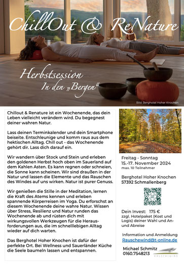 Informationen zu den Chill Out & Renature Terminen finden Sie in der nachstehenden Ausschreibung.